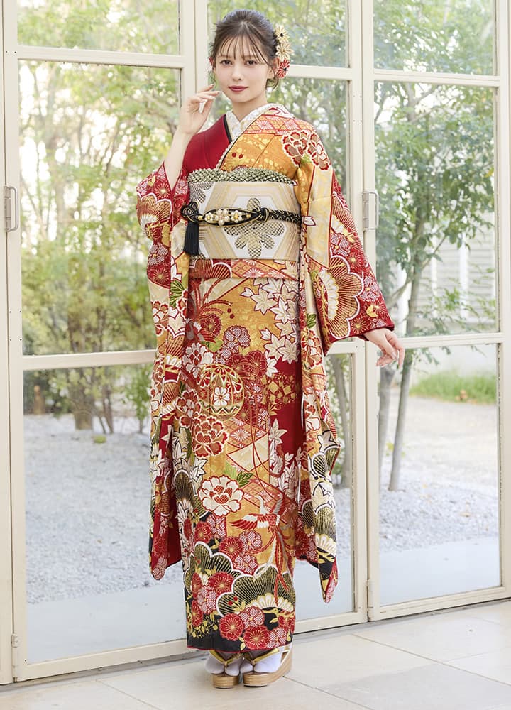 着付けに必要な小物類を含め、正絹振袖一式をお仕立て上がりでご提供。京都の一流メーカーより特別にご用意致しました。ぜひこの機会にお求めください。